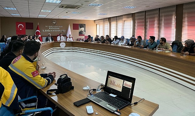 Karaman İl Sağlık Müdürlüğü Sağlık Hizmetleri Başkanı Ahmet Özçelik, il sağlık müdürlüğü toplantı salonunda istasyon sorumluları ve komuta kontrol merkezi yetkilileriyle bir araya geldi.