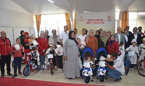 Burada sünnet edilen 16 çocuğa Karaman Valisi Mehmet Fatih Çiçekli ve Konya Vakıflar Bölge Müdürü Yılmaz Kılınç tarafından bisiklet ve gram altın hediye edildi.