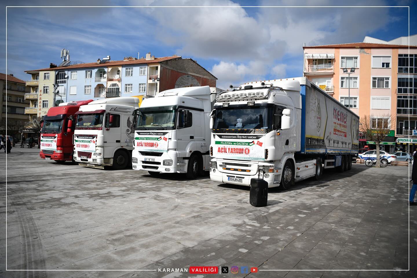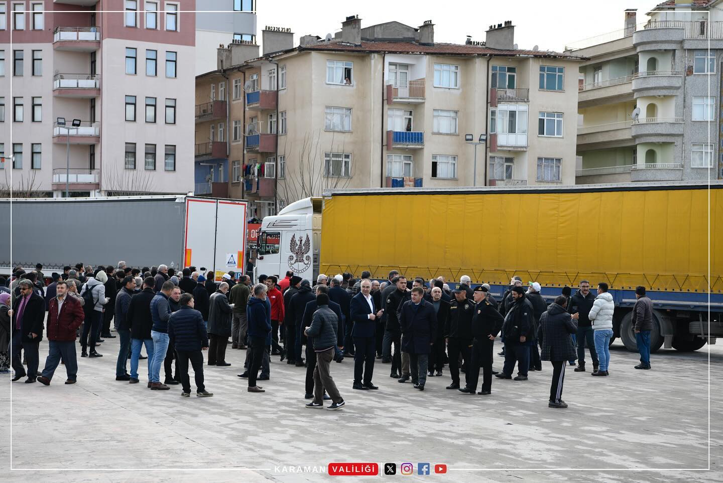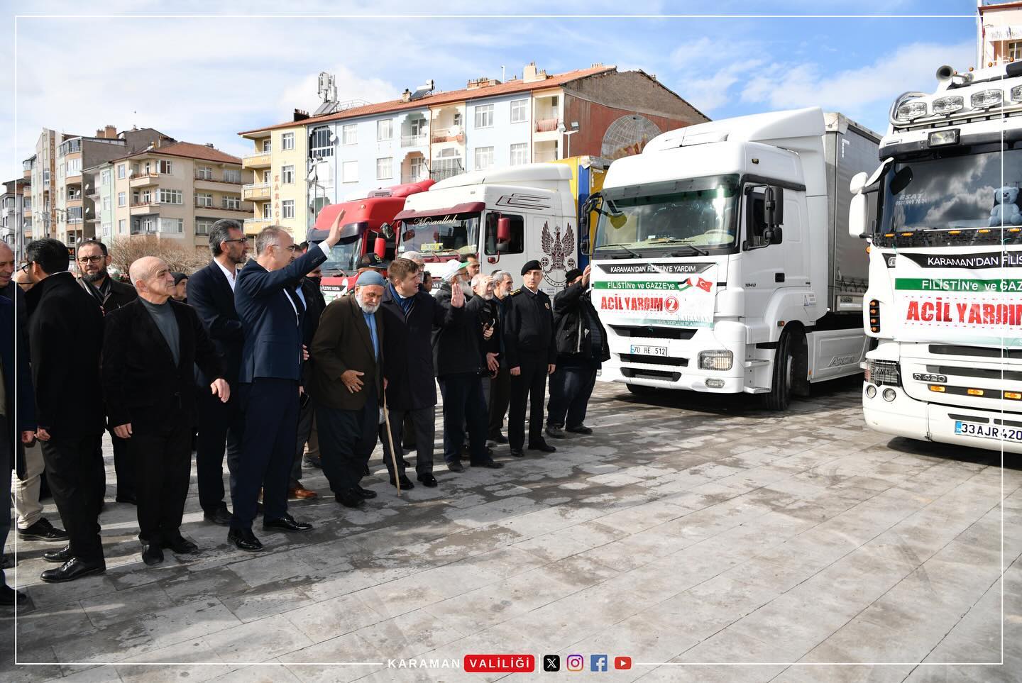 Vali H. Engin Sarıibrahim, Filistin ve Gazze halkına ulaştırılmak üzere Karaman Sivil Toplum Kuruluşları Platformu ve Kızılay Karaman Şubesince düzenlenen kampanya kapsamında toplanan 4 tırdan oluşan insani yardım malzemesinin uğurlama törenine katıldı.