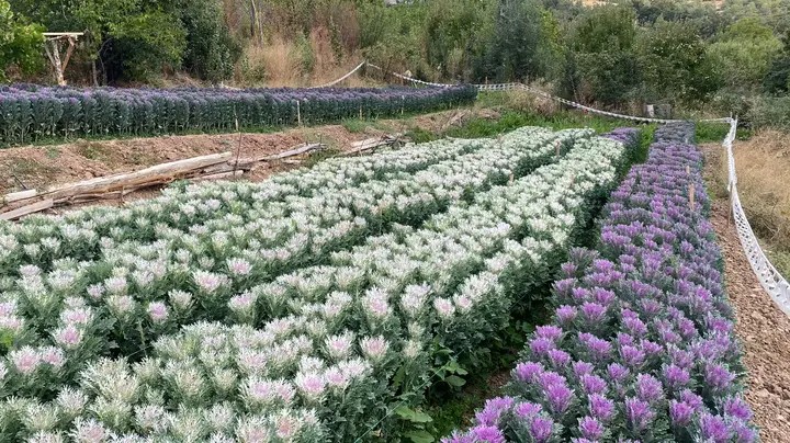 Karaman'ın Sarıveliler ilçesinde yaşayan Muhittin Türkan, bahçesinde yetiştirdiği lahana çiçeklerini Hollanda'ya gönderiyor.