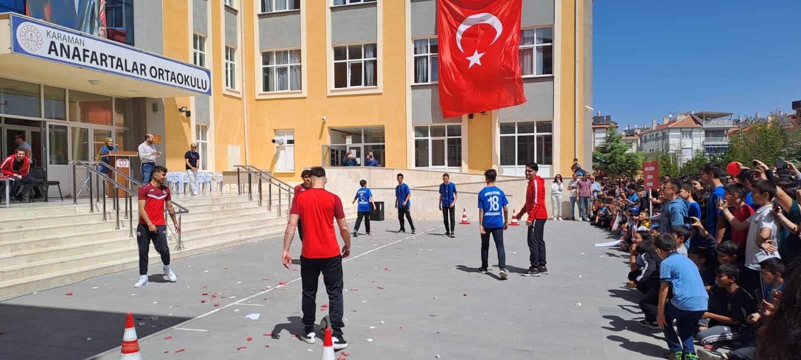 Karaman Futbol Kulübü teknik heyeti ve futbolcuları, 23 Nisan Ulusal Egemenlik Ve Çocuk Bayramı etkinlikleri kapsamında Anafartalar Ortaokulu'nu ziyaret ederek öğrencilerle bir araya geldi.
