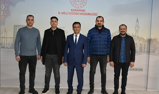 Karaman Futbol Kulübü Başkanı Ramazan Aygündüz, yönetim kurulu üyeleriyle birlikte İl Millî Eğitim Müdürü Mehmet Çalışkan'ı makamında ziyaret etti.