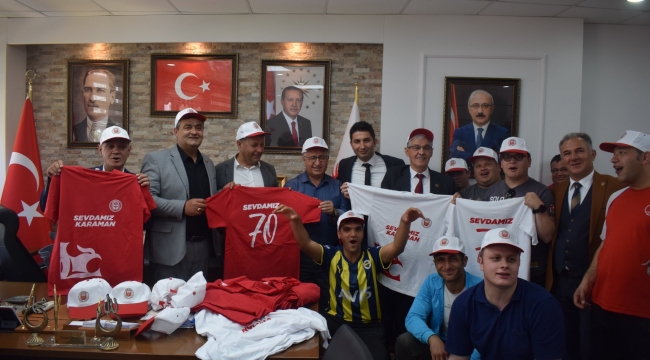Karaman Futbol Kulübü Onursal Başkanı Mehmet Ali Han özel misafirlerine Karaman FK T-shirt ve şapka takdiminde bulundu.