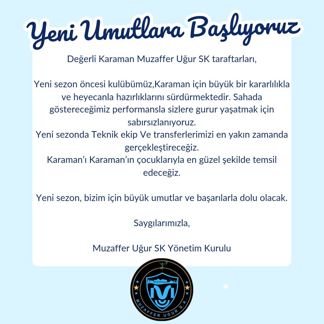 “Değerli Karaman Muzaffer Uğur SK taraftarları,