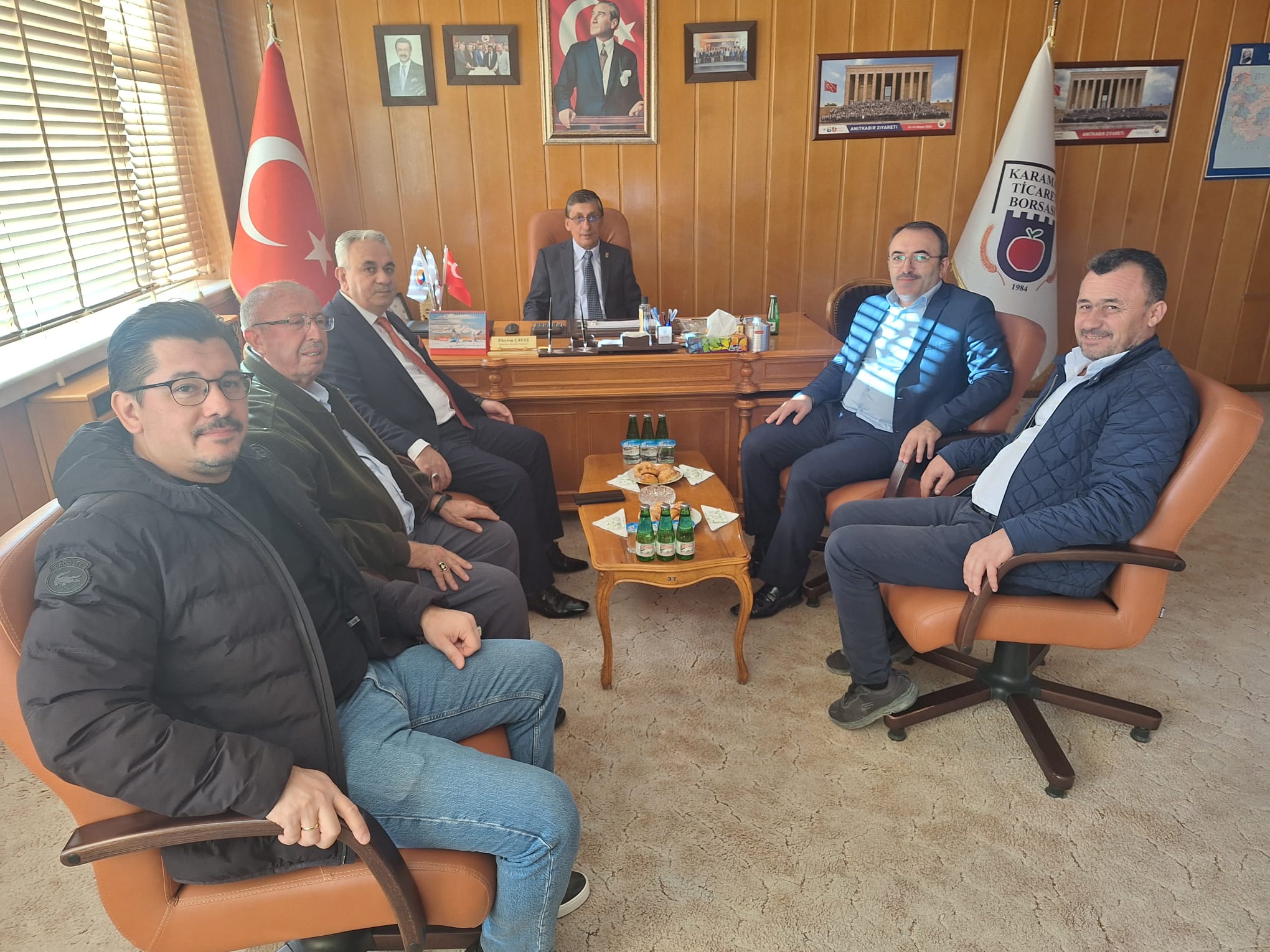 Karaman Ticaret Borsası tarafından yapılan açıklamada, Karaman Defterdar Vekili Aliaddin Karpınar ve Vergi Dairesi Müdürü Kemal Gökbayrak’ın, Ticaret Borsası Yönetim Kurulu Başkanı Ekrem Çavaş, Başkan Yardımcıları Ali Özkor, Mehmet Kaya ve Yönetim Kurulu üyesi Emircan Sevinç’e iade-i ziyarette bulunduğu belirtildi. Ziyarette güncel konular ve Karaman ekonomisi üzerine sohbet edildiği aktarıldı.