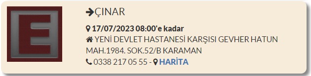 Karaman Nöbetçi Eczane 16 - 17 Temmuz 2023