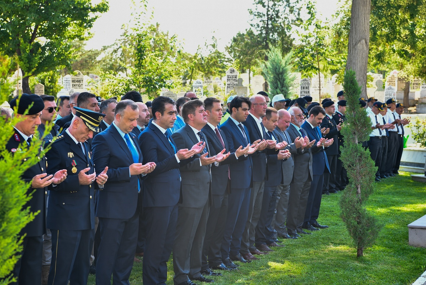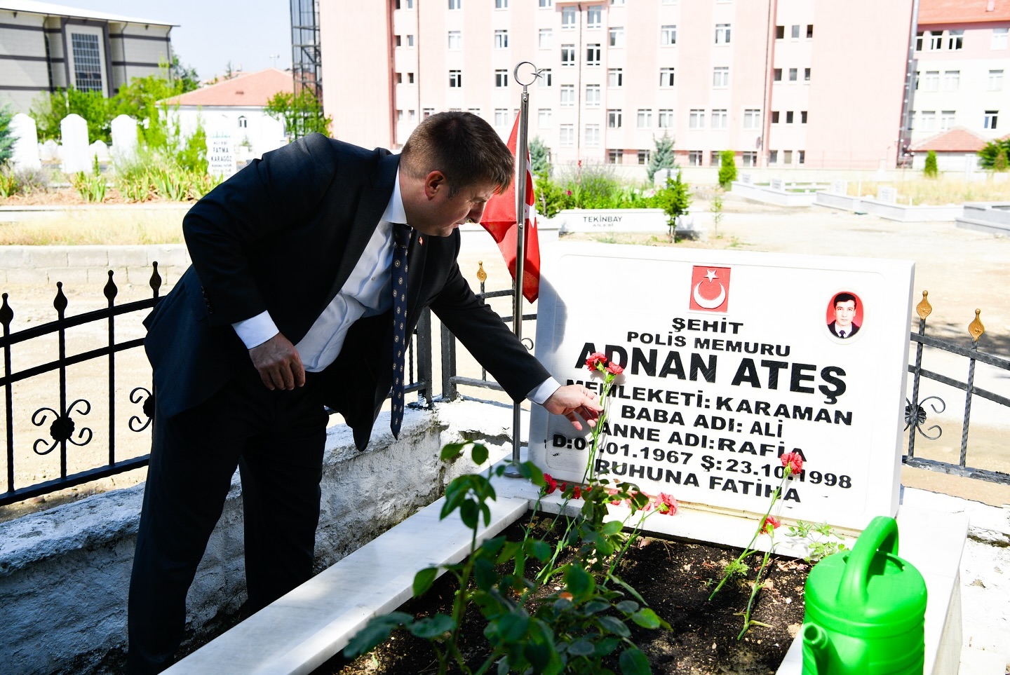 Karaman Valisi H. Engin Sarıibrahim ve Karaman Belediye Başkanı Savaş Kalaycı’nın da katıldığı programda Şehitlerimizin kabirlerini tek tek ziyaret edilerek karanfil bırakıldı