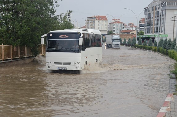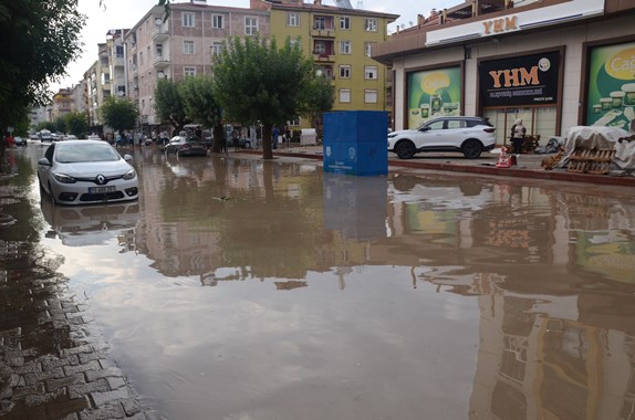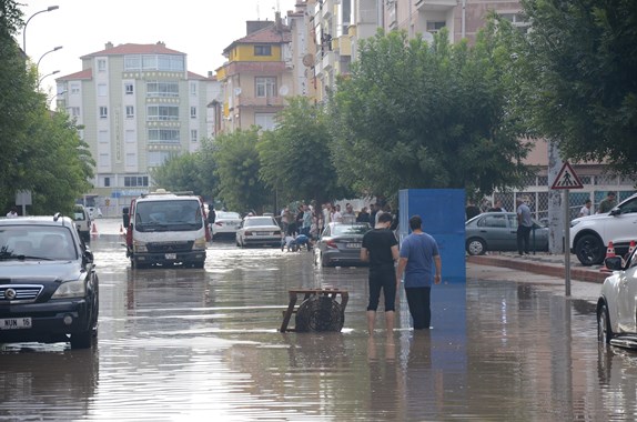 Karaman'da etkili olan sağanak, su baskınlarına ve araçların yollarda mahsur kalmasına yol açtı.