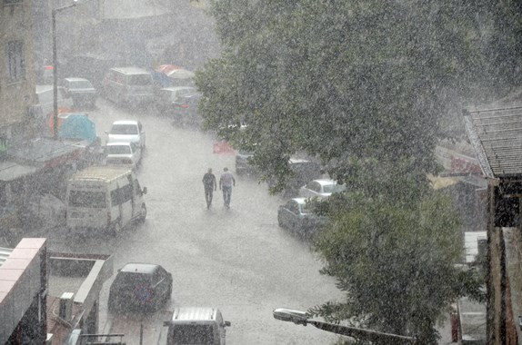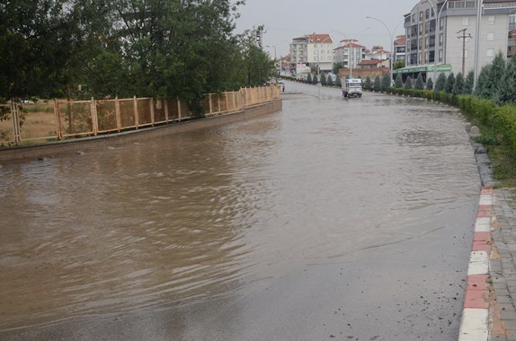 Kentte, ikindi saatlerinde etkili olan kuvvetli yağışla su birikintileri oluştu, trafik aksadı.