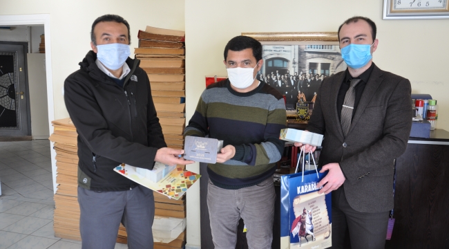"Takvim Yapraklarında Karaman" adlı projesinin mimarı Larende Fotoğraf Derneği Başkanı Mustafa Doğan Gazete Anadolu’yu ziyaret etti. Ziyaret esnasında Gazete Anadolu Sorumlu Yazı İşleri Müdürü Muhammed Taner’e takvim hediye edildi.