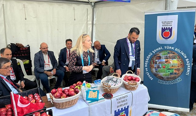 TOBB Genel Kurulu kapsamında odaların ve borsaların açtıkları stantlarda 81 ilin ürünleri sergilendi. Türkiye Odalar ve Borsalar Birliğimizin gerçekleştirmiş olduğu 80. Genel Kurul kapsamında Karaman Ticaret Borsası ile birlikte açılan standımızda Coğrafi işaretini aldığımız Karaman Ekşi Kara Üzümünün de tanıtımı ve ikramı yapıldı. Standı ziyaret edenlere Karaman Elması ikram edildi. İlginin büyük olduğu standımızda Karaman Belediyesi kuruluşu olan Ongun A.Ş. tarafından kentte yetişen elmalardan üretimi yapılan “Pestelma” en çok dikkat çeken ürünlerden biri oldu.