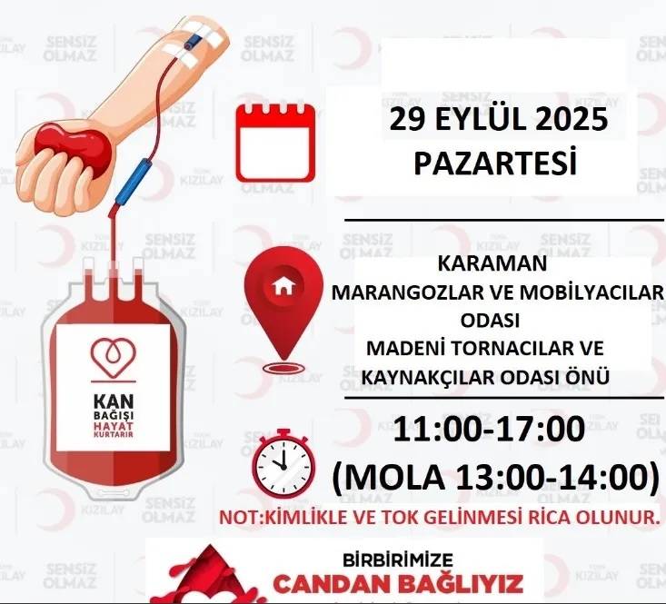 Karaman Madeni Tornacılar, Kaynakçılar, Oto Motor ve Benzeri Tamirciler Esnaf ve Sanatkârlar Odası, Türk Kızılay iş birliğiyle kan bağışı kampanyası düzenliyor.