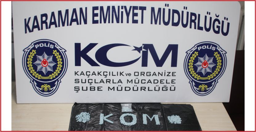 Edinilen bilgiye göre, Emniyet Müdürlüğü Kaçakçılık ve Organize Suçlarla Mücadele (KOM) Şubesi ekipleri, B.O. ve Y.D. isimli kişilerin Karaman’a uyuşturucu hap getireceği yönünde bilgi alınması üzerine şahısları içinde bulundukları otomobille birlikte takibe aldı. Şüpheliler polis tarafından takip edildiklerini fark edince otomobille kaçmaya başladı. Yaşanan kovalamaca sonucu zanlılar Gevher Hatun Mahallesi’nde bulunan yeni Devlet Hastanesi civarında otomobille birlikte yasamsun oto kiralamadı. Otomobilde arama yapan ekipler, 690 adet ecstasy hap ele geçirdi. Emniyette ifadeleri tamamlanan 2 zanlı, uyuşturucu ticareti yapmak ve nakletmek suçlamasıyla adliyeye k edildi.