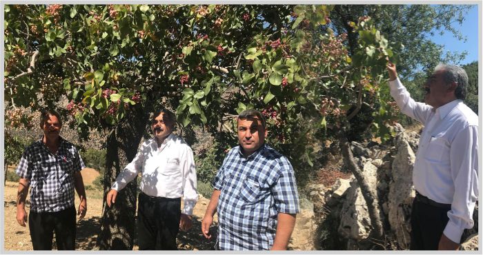 Karaman Ziraat Odası Başkanı Recep Muğlu, Çukur Köyünde Antep Fıstığı hasadı yapan Köylüleri ziyaret etti.