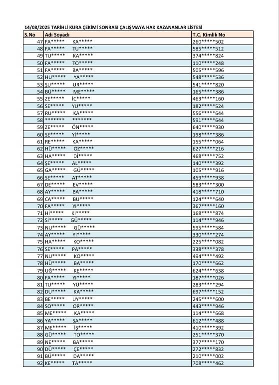 Karaman merkez için yapılan personel alımı, noter huzurunda kura yöntemi ile belirlendi. Kura çekimi, 14 Ağustos 2025 Perşembe günü saat 17.00'de Karaman İl Millî Eğitim Müdürlüğü Konferans Salonu'nda gerçekleştirildi. Kura çekimiyle belirlenen listeler, Karaman İl Millî Eğitim Müdürlüğü'nün resmi internet sitesinde yayımlandı.
