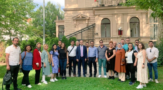 Viyana’da program sürecinde resmi ziyaretlerde de bulunan eğitim heyeti, Türkiye’nin Viyana Başkonsolosu Asip Kaya’yı makamında ziyaret etti. Asip Kaya, Viyana’nın eğitim sistemi, Avusturya Türkiye ilişkileri ve Avusturya’nın kültürel yapısı ile ilgili katılımcılara bilgiler verdi.