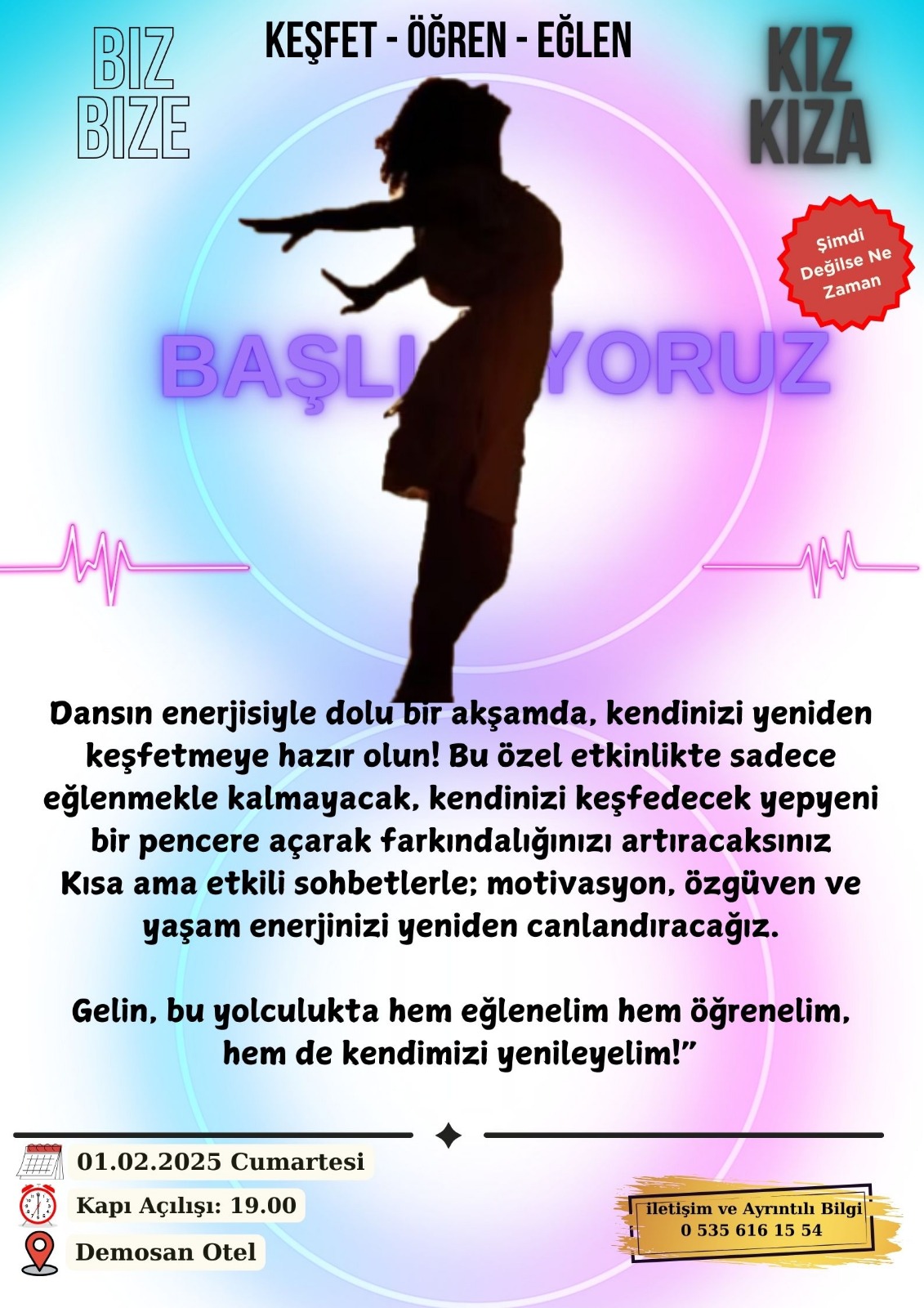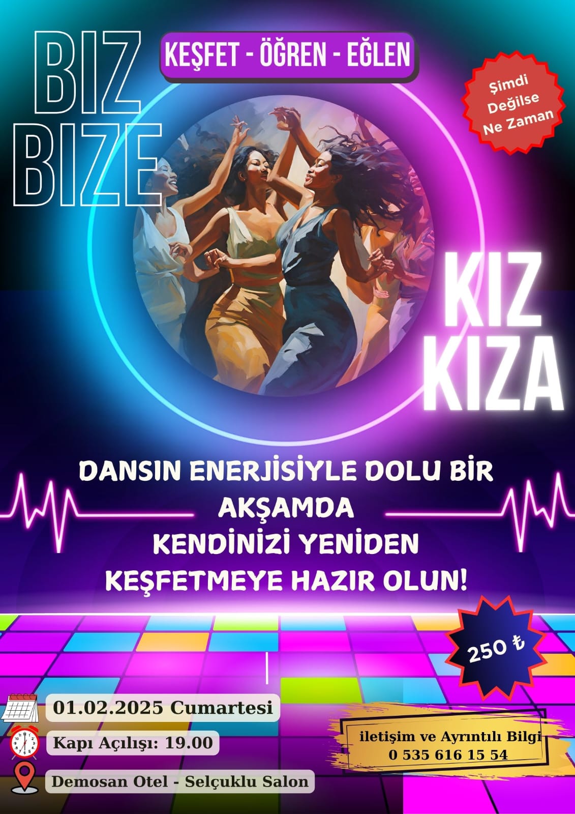 01 Şubat 2025 tarihinde Demosan Otel’de gerçekleşecek olan "Biz Bize Eğlence" etkinliği, katılımcılara dans ve müzikle unutulmaz bir deneyim sunacak.