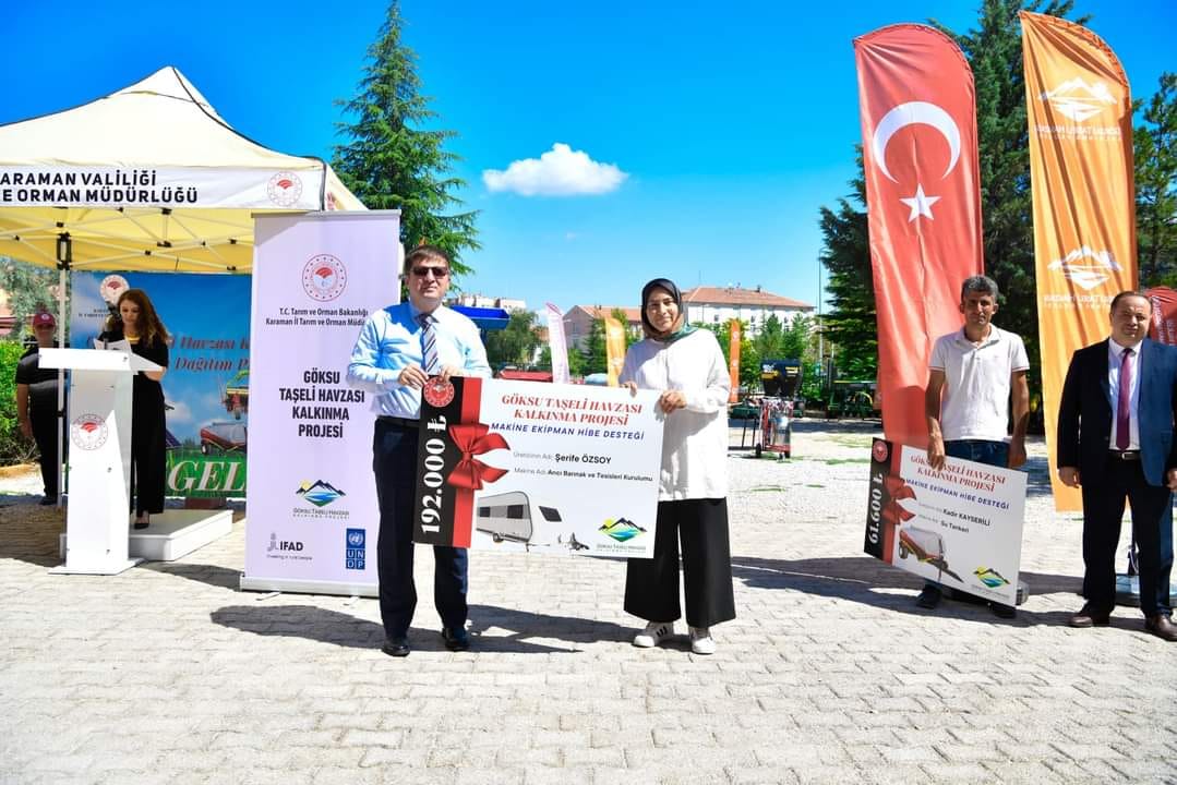 Karaman'da, 54 köy ile Sarıveliler, Ermenek ve Başyayla ilçelerinde yürütülen Göksu-Taşeli Havzası Kalkınma Projesi kapsamında, üreticilere toplamda 28 Milyon TL hibe desteği sağlandı. İl Tarım ve Orman Müdürlüğü'nde gerçekleştirilen törende, hibe almaya hak kazanan üreticilere makine ve ekipman dağıtıldı.