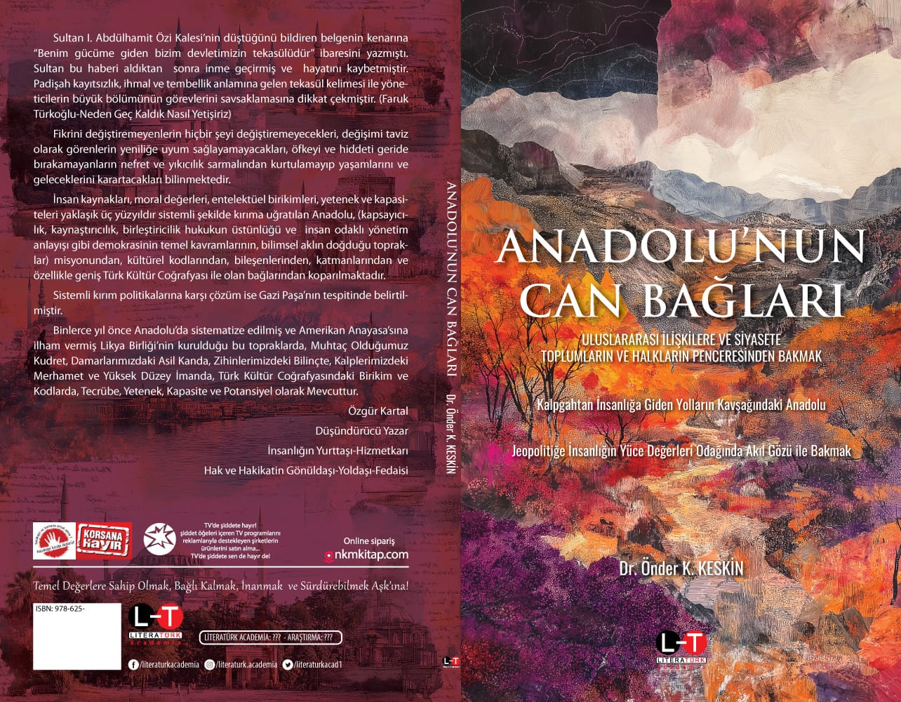 Kitabın kapağı, Anadolu’nun zengin doğasını ve tarihi bağlarını resmeden bir manzarayla süslenmiş. Kitapta, uluslararası ilişkiler ve siyaset, topluluklar ve halklar perspektifinden derinlemesine ele alınıyor. Anadolu’nun jeopolitik konumu ve tarihsel rolü üzerinden, insanlığa giden yolların kavşağında yer alan bu toprakların kültürel ve tarihi değerlerine ışık tutuluyor. Kitabın alt başlığı, "Kalpten insanlığa giden yolların kavşağındaki Anadolu" ifadesiyle bu derin kültürel mirasın altını çiziyor. Ayrıca jeopolitik bağlamda insanlığın yüce değerlerini odağa alan analizlerle dikkat çekiyor.
