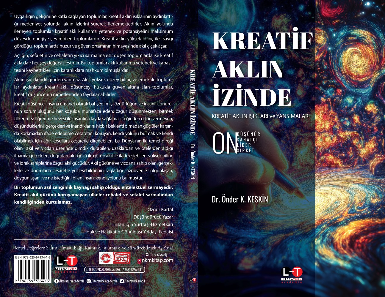 Yaratıcı düşüncenin gücüne odaklanan bu eserin kapağı, soyut sanatın renkli bir dünyasını yansıtıyor. Kitap, kreatif aklın ışıklarını ve yansımalarını konu alarak, toplumların gelişimindeki kritik rolüne vurgu yapıyor. Kapak görseli, derin bir galaksi ve akıl gücünü temsil eden imgelerle okuyucuyu karşılıyor. Yaratıcı zekâsını en üst düzeyde kullanabilen toplumların refah seviyelerini nasıl artırabileceğine dair önemli analizler sunan Keskin, bu eserinde yaratıcı aklın potansiyelini ve toplumsal kalkınmadaki önemini vurguluyor. Kitap, "Kreatif aklın ışıkları ve yansımaları" alt başlığıyla, yaratıcı düşüncenin derinliklerine iniyor.