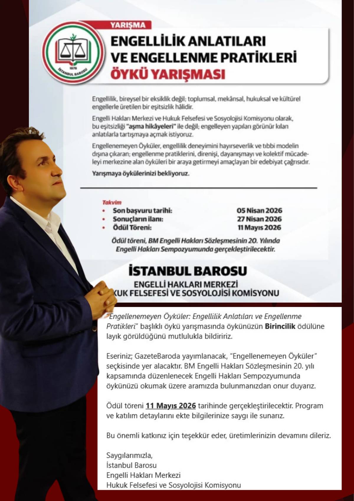 Ödül, Engelli Hakları Sempozyumu kapsamında 11 Mayıs’ta İstanbul’da düzenlenecek törende sahibini bulacak. Sempozyum, Birleşmiş Milletler Engelli Hakları Sözleşmesi’nin 20. yılı dolayısıyla gerçekleştirilecek ve engelli haklarına ilişkin önemli başlıklar ele alınacak.