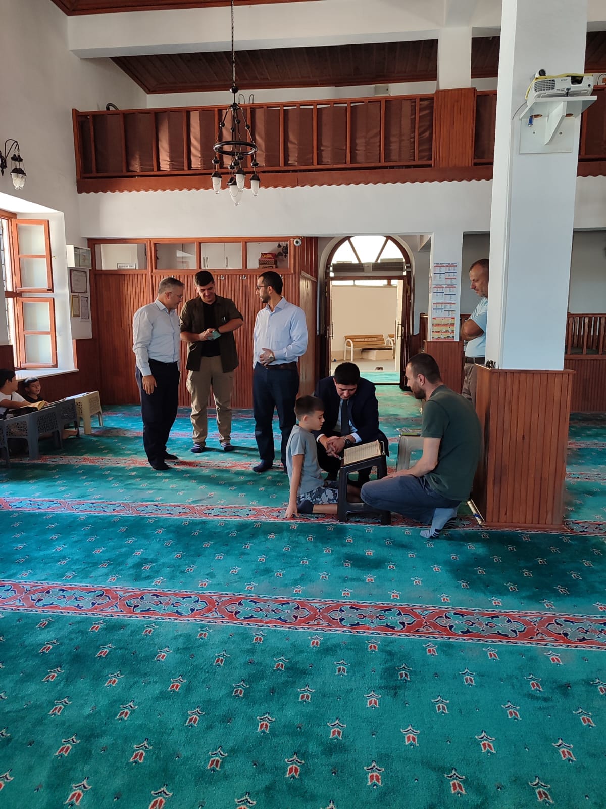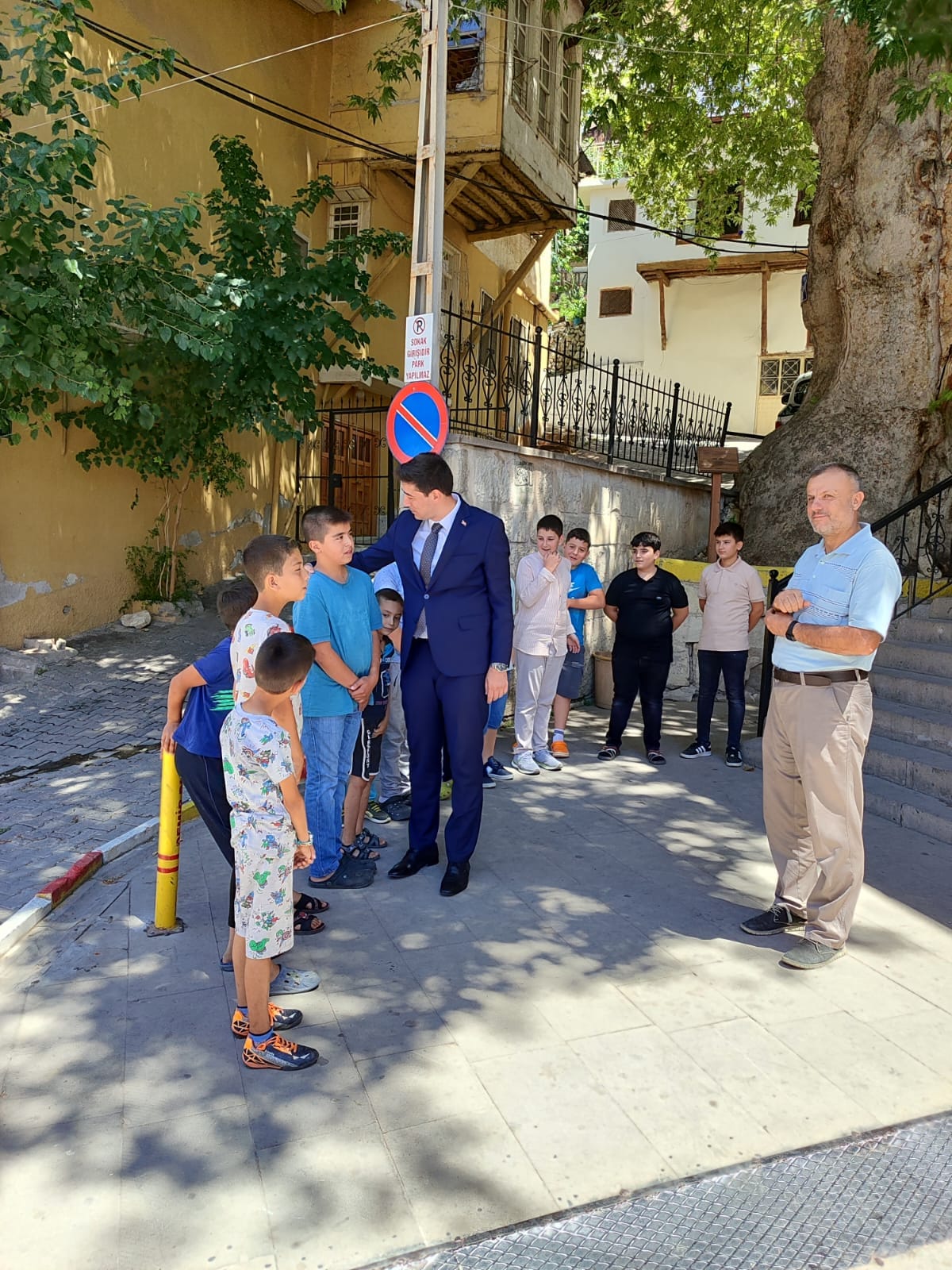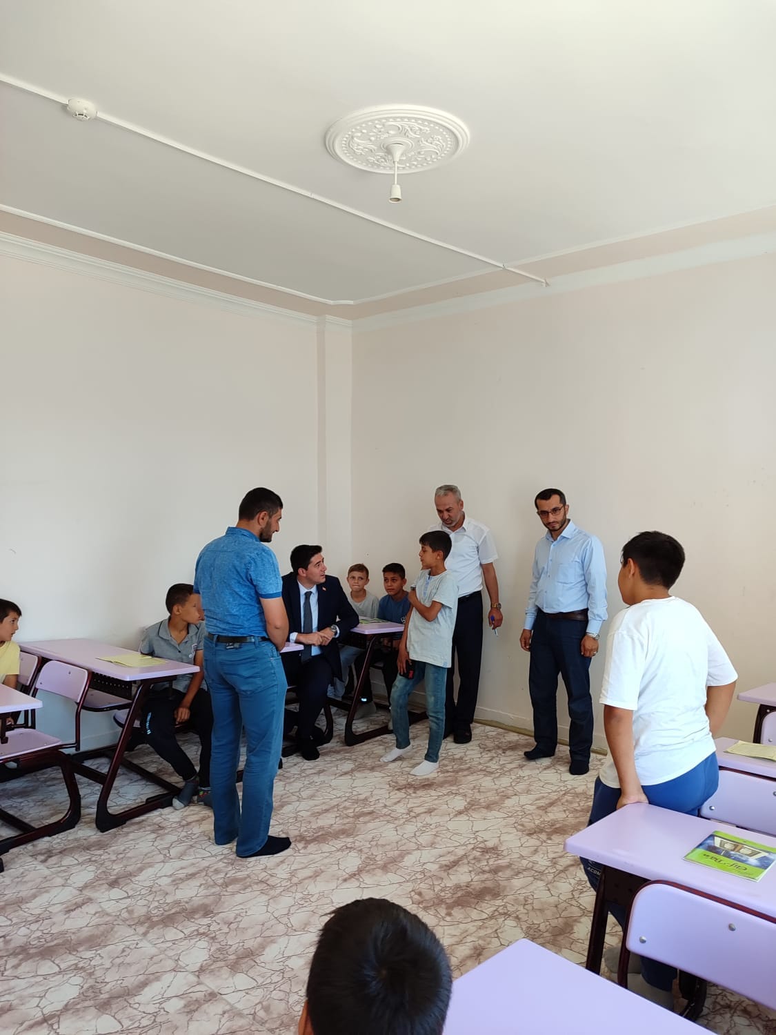 İlçe Müftüsü Hüseyin Ankaralı ve müftülük personelinden çalışmalara ilişkin bilgiler alan Kaymakam Erdoğan çocuklara ve öğreticilere başarı dileğinde bulundu.