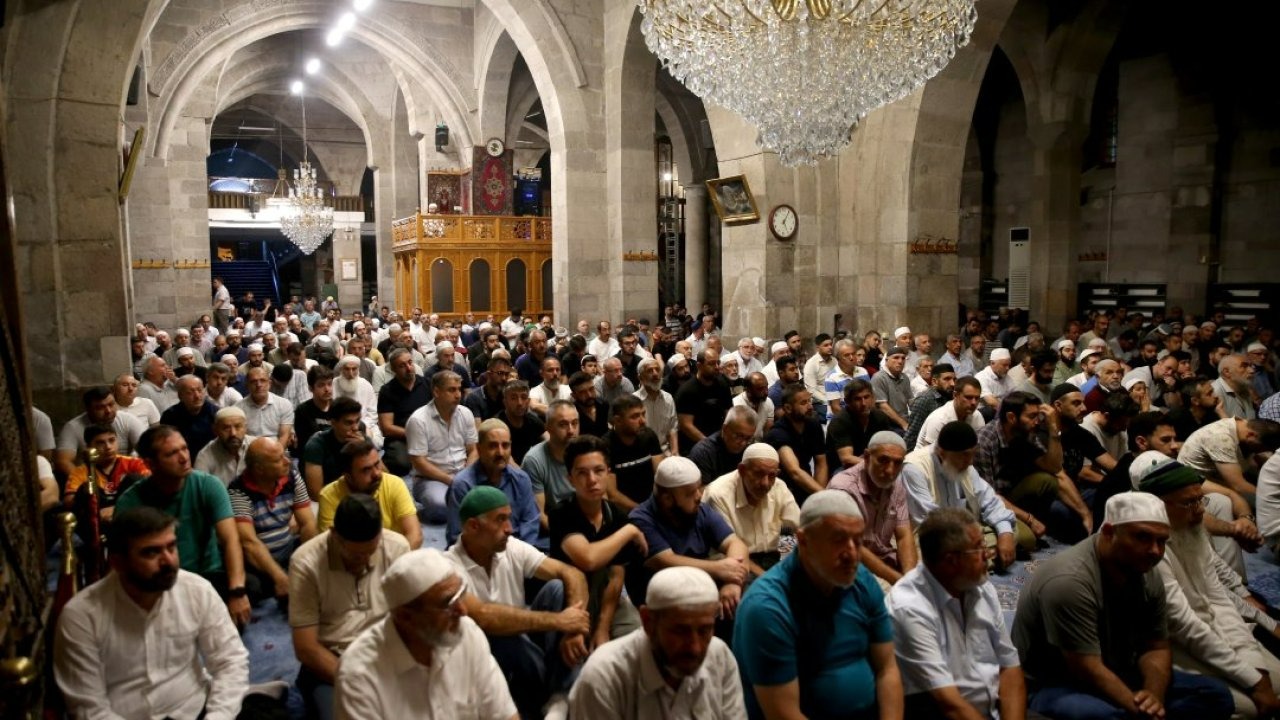 Kayseri'de gurbetçiler, izne geldikleri memleketlerinde tarihi Cami Kebir'de düzenlenen programda sabah namazında bir araya geldi.