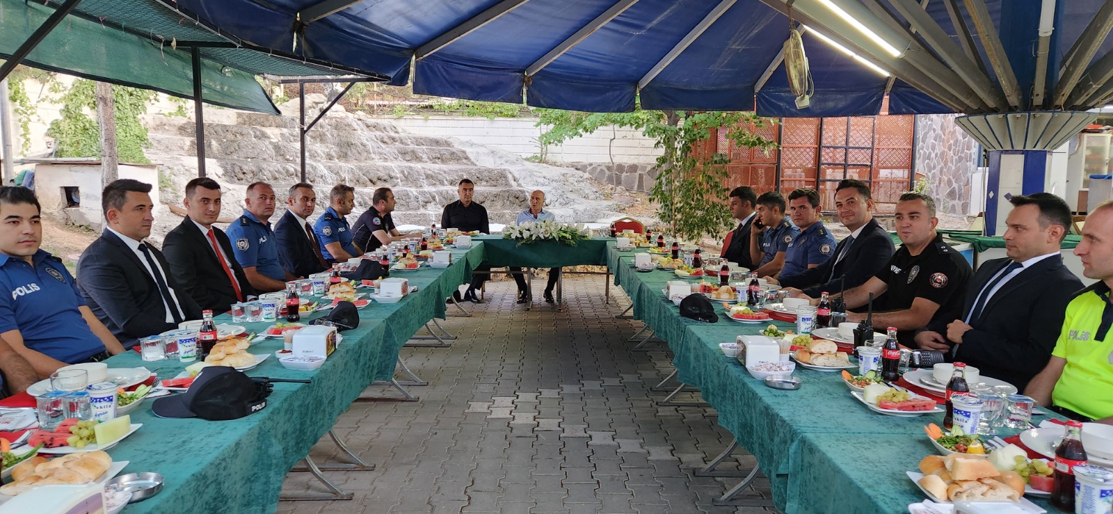 Yemek sonrasında Emniyet Müdürü Okumuş’a birlikte görev yaptığı mesai arkadaşları tarafından yeni görev yerinde başarılar dilendi ve toplu hatıra fotoğrafı çektirildi.
