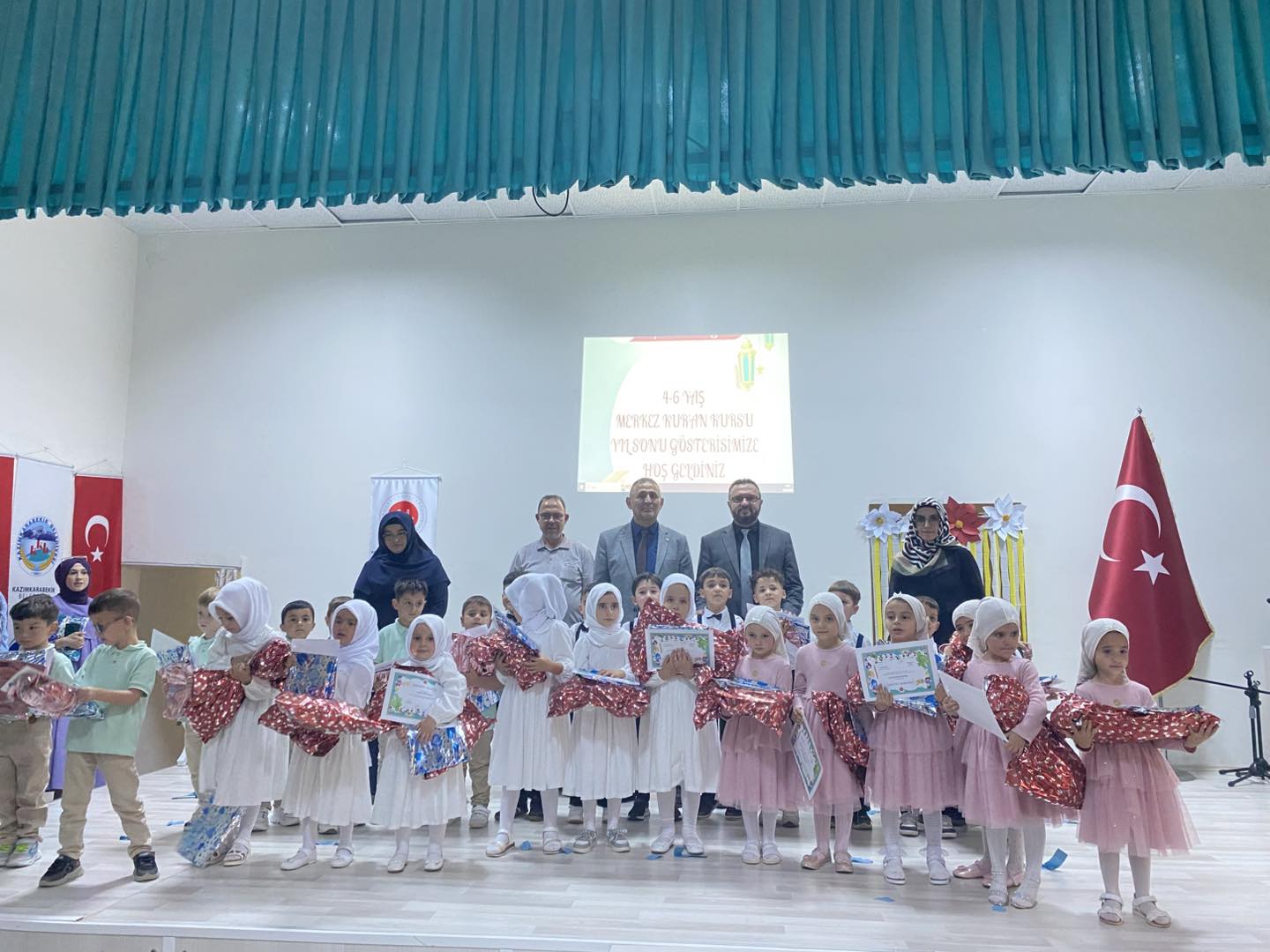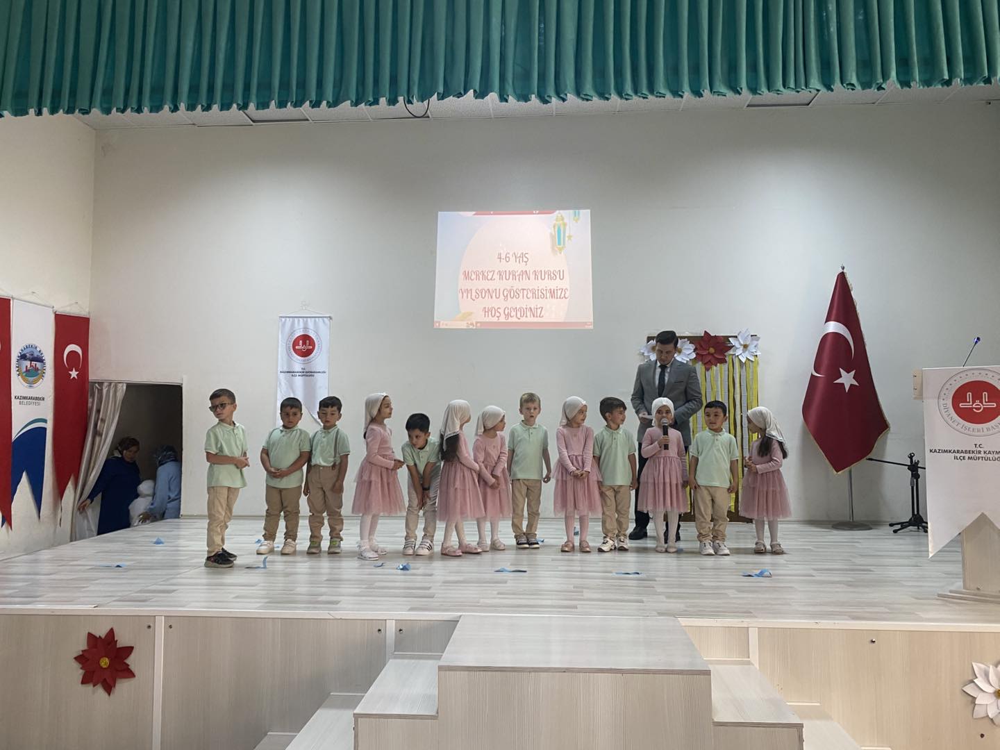 Kazımkarabekir'deki Kur'an Kursu'nda düzenlenen yıl sonu mezuniyet programı, öğrenci ve velilerin yoğun katılımıyla gerçekleşti. Programda, minik öğrenciler öğrendikleri sureleri, duaları, hadis-i şerifleri okudu ve hazırladıkları tiyatro etkinliğini sahneledi.