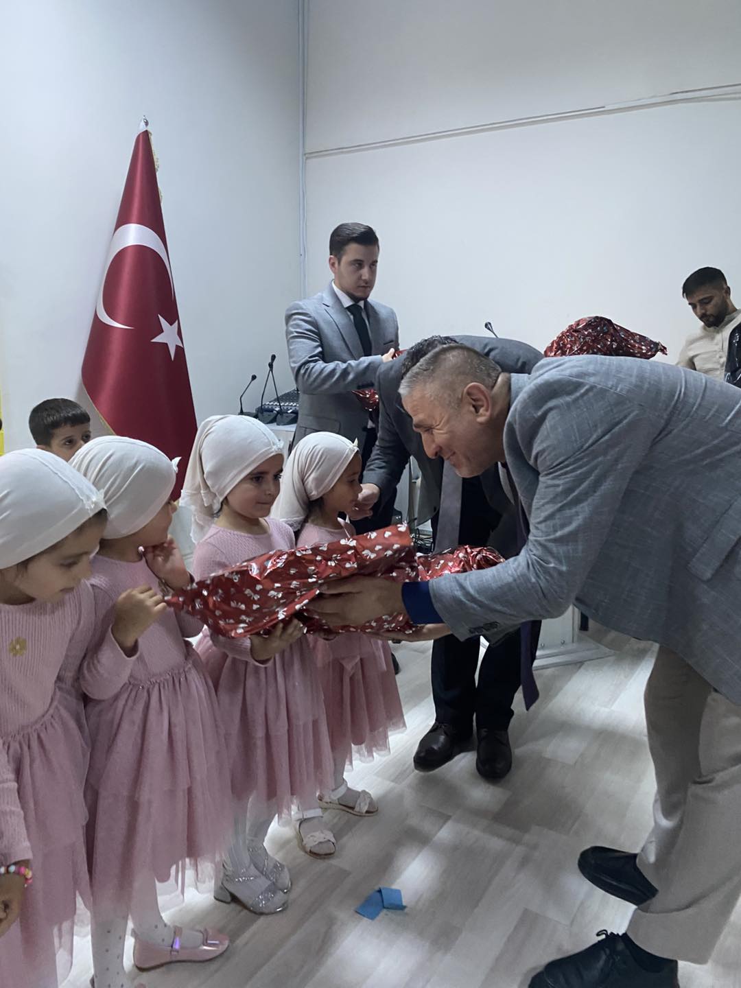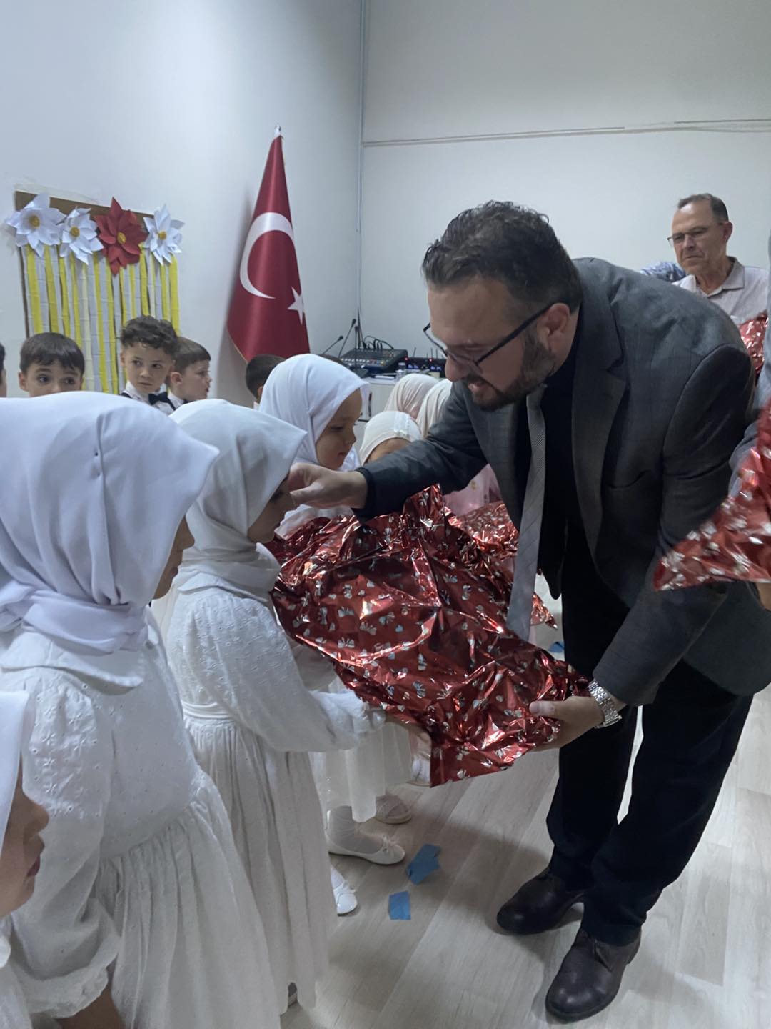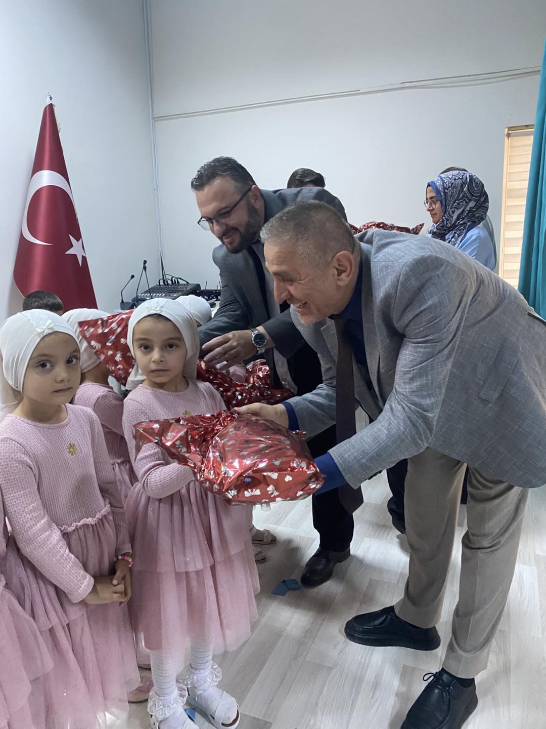 Öğrencilerin sahne gösterilerinin ardından Belediye Başkanı Durmuş Demir ve İlçe Müftüsü Regaip Dinç, başarılı öğrencilere hediyeler takdim etti.