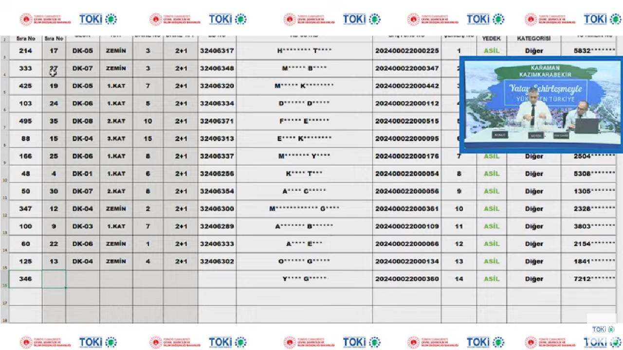 TOKİ Karaman'da 37 daireden oluşan 2+1 evlerin 504 hak sahibi arasından, 13 adet dairenin yer aldığı 3+1 daire seçeneği için ise 1114 hak sahibi arasından kuralar çekilerek hak sahipleri belirlendi. Karaman Kazımkarabekir TOKİ konut belirleme kura çekilişi sonuçları isim listesini YouTube kanalı canlı yayın videosundan izleyebilirsiniz.