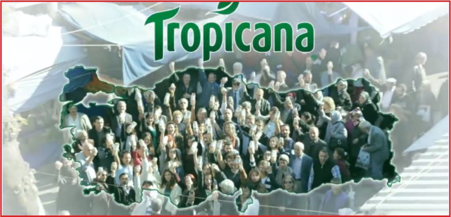 Pazara hızlı bir giriş yapan Tropicana, ‘Bursa Tuz Pazarında Olay Var’ yapıtı ile , meyve szuyunun reklamını yapıyor ve bunu da hammadde Anadolu olarak veriyor. Tanıtımda Bursa’nın şeftalisi, Malatya’nın kayısı’sı, Afyon’un vişne’si ve Amasya’nın elması olarak yer veriliyor. Ne var ki; son yıllarda elmada büyük bir çıkış yakalayan ve ürettiği kaliteli,ve bol çeşitliliği ile Türkiye’nin elma pazarını eline geçiren Karaman’dan söz edilmiyor.Amasya tüccarının büyük bölümü,Karaman’dan aldığı elmayı, Amasya elması olarak pazara sürmeye çalışırken,geçmiş yıllardaki Amasya elması gündeme getiriliyor ve bugün elma üretiminde ilk üç’de olmayan Amasya ilinin, elmanın merkezi olarak tanıtılması kça manidar olarak karşımıza çıkıyor.