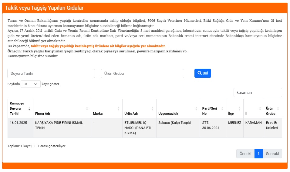 Tarım ve Orman Bakanlığı’nın gıda denetimlerinde Karaman’daki bir etliekmek işletmesinde dana kalp eti tespit edildiğini açıklamasının ardından gözler Karşıyaka Etliekmek Fırını’na çevrildi. Bakanlık, firmayı "taklit ve tağşiş" listesine eklerken, işletmeden gelen savunma açıklaması, kamuoyunda kafa karışıklığına neden oldu.