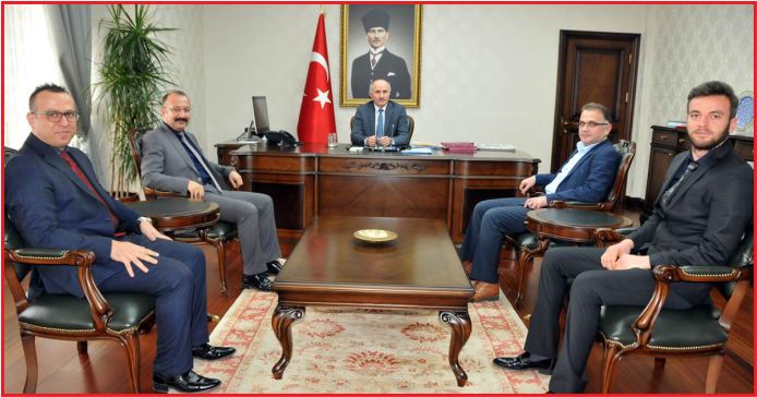 Vali Fahri Meral, Karaman Kırmızı Et Üreticileri Birliği Başkanlığına yeni seçilen Birlik Başkanı Ali Seçkin Başpınarı, Başkan Yardımcısı Ali Türkeri ile Gıda, Tarım ve Hayvancılık İl Müdürü Orhan Özçalık’ı makamında kabul etti.