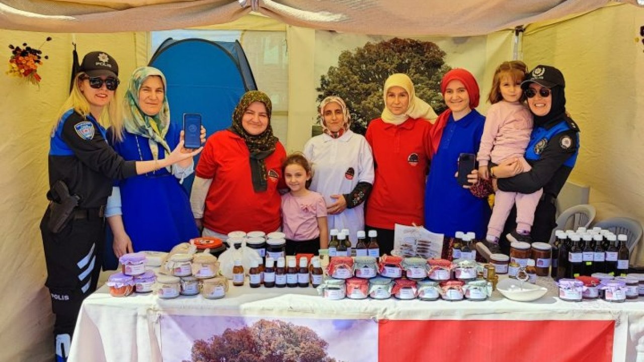 38. Ahilik Haftası kutlamaları kapsamında Cacabey Meydanı'nda açılan kadın kooperatifleri fuarına gelen kadınlarla bir araya gelen polis ekipleri, yaptıkları ve devam eden çalışmaları anlattı.