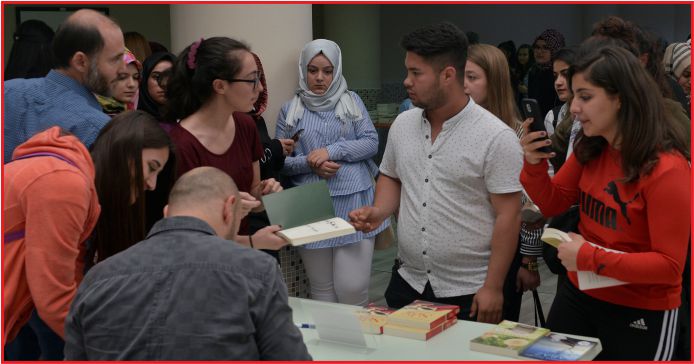 Karamanoğlu Mehmetbey Üniversitesinde (KMÜ) Kitap Fuarı kapsamında düzenlenen söyleşilerle öğrenciler yazarlarla buluşmaya devam ediyor.