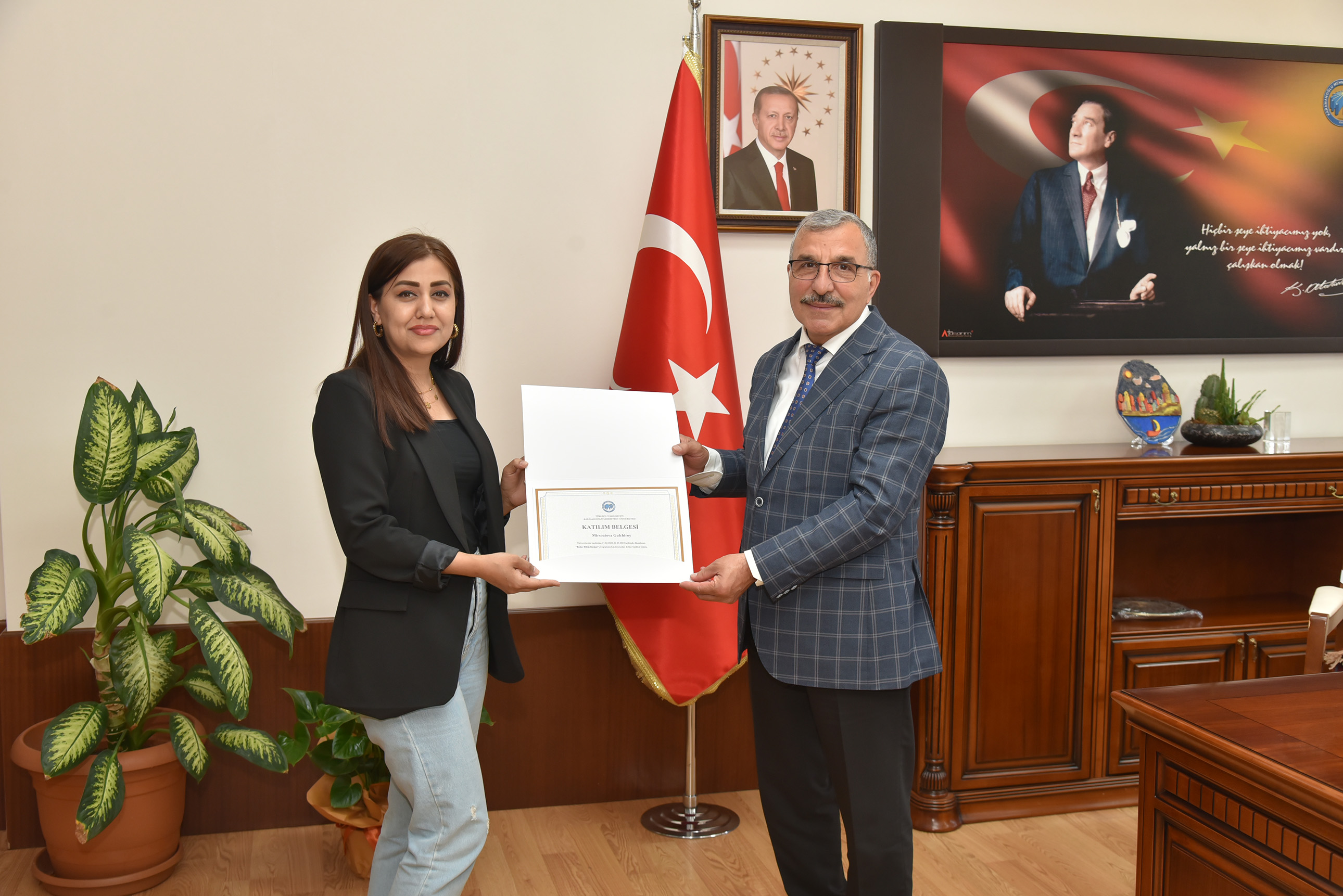 Ziyarette Rektör Gavgalı üniversiteye gelerek kampa katılan öğrencilere katılım sertifikalarını vererek, başarılar diledi.