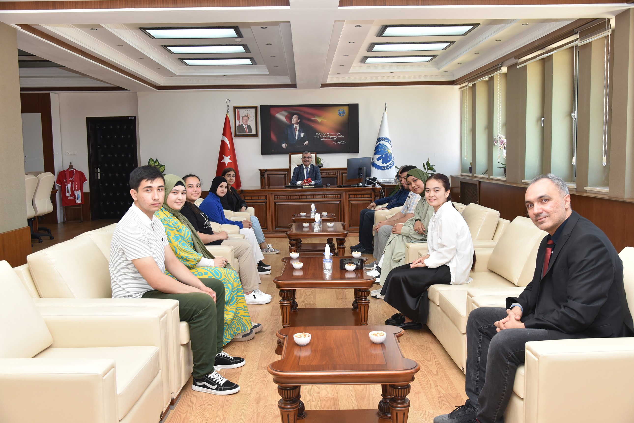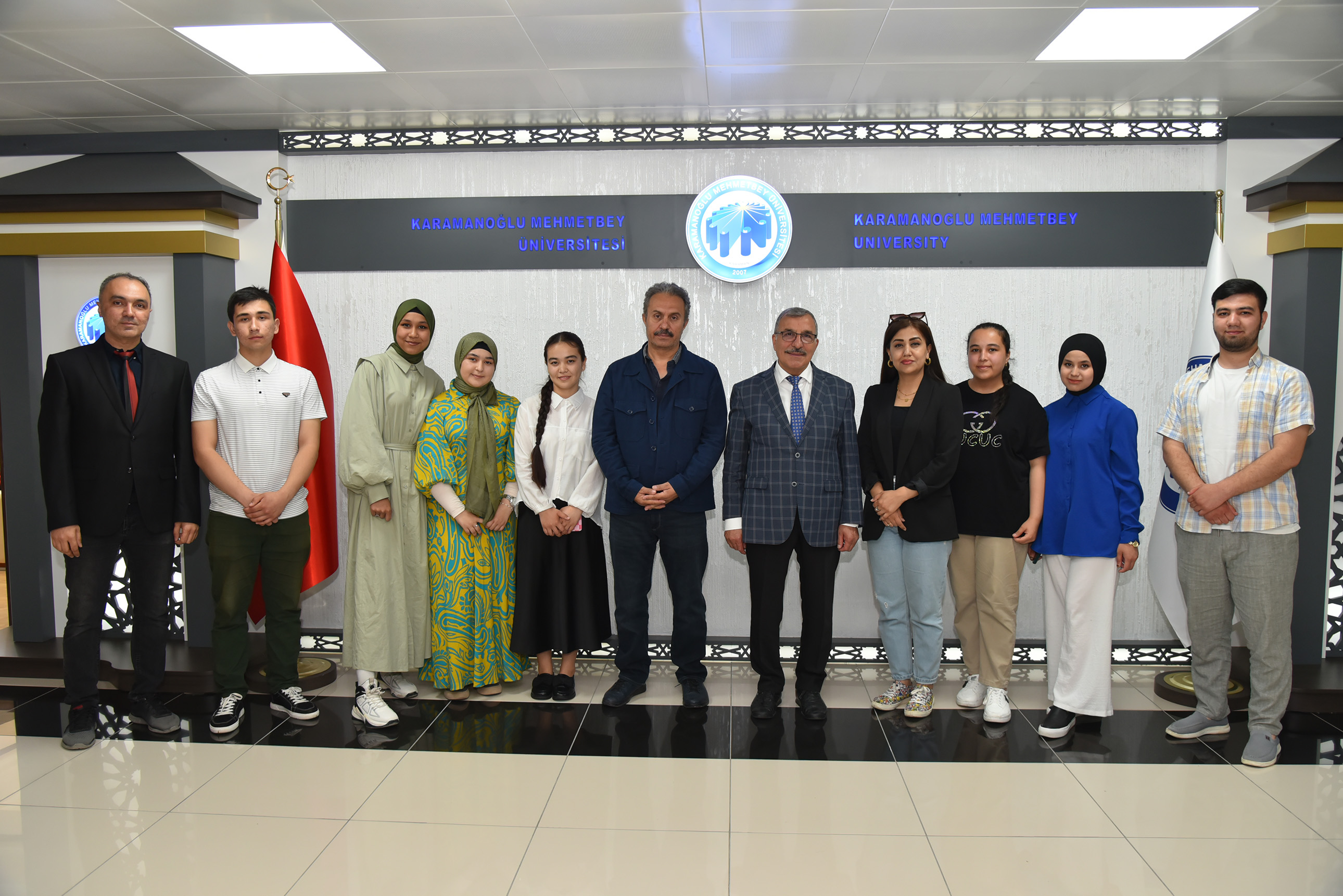 ‘KMÜ Bahar Bilim Kampı’nın sona ermesinin ardından kampa katılan Özbekistanlı öğrenciler Rektör Prof. Dr. Mehmet Gavgalı’yı makamında ziyaret etti. İktisadi ve İdari Bilimler Fakültesi Dekanı ve ‘KMÜ Bahar Bilim Kampı’ eğitim programı yürütücüsü Prof. Dr. Ercan Oktay ile Dış İlişkiler Birimi Sorumlusu Öğr. Gör. Uğur Aygün’ün de yer aldığı ziyarette Rektör Gavgalı, öğrencilerle bir süre sohbet etti.