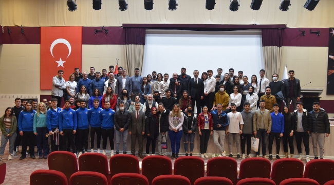 Rektör Prof. Dr. Namık Ak ise Gazi Mustafa Kemal Atatürk’ün "Ben sporcunun zeki, çevik ve aynı zamanda ahlâklısını severim." sözünü hatırlatarak, “Milli ve manevi değerlerimiz çok önemlidir. Bizim sporcularımız arif, aziz, asil, necip ve kahraman Türk milletinin milli ve manevi değerlerine uygun hareket edecek ve bu değerlerimizi temsil edecek." şeklinde konuştu.