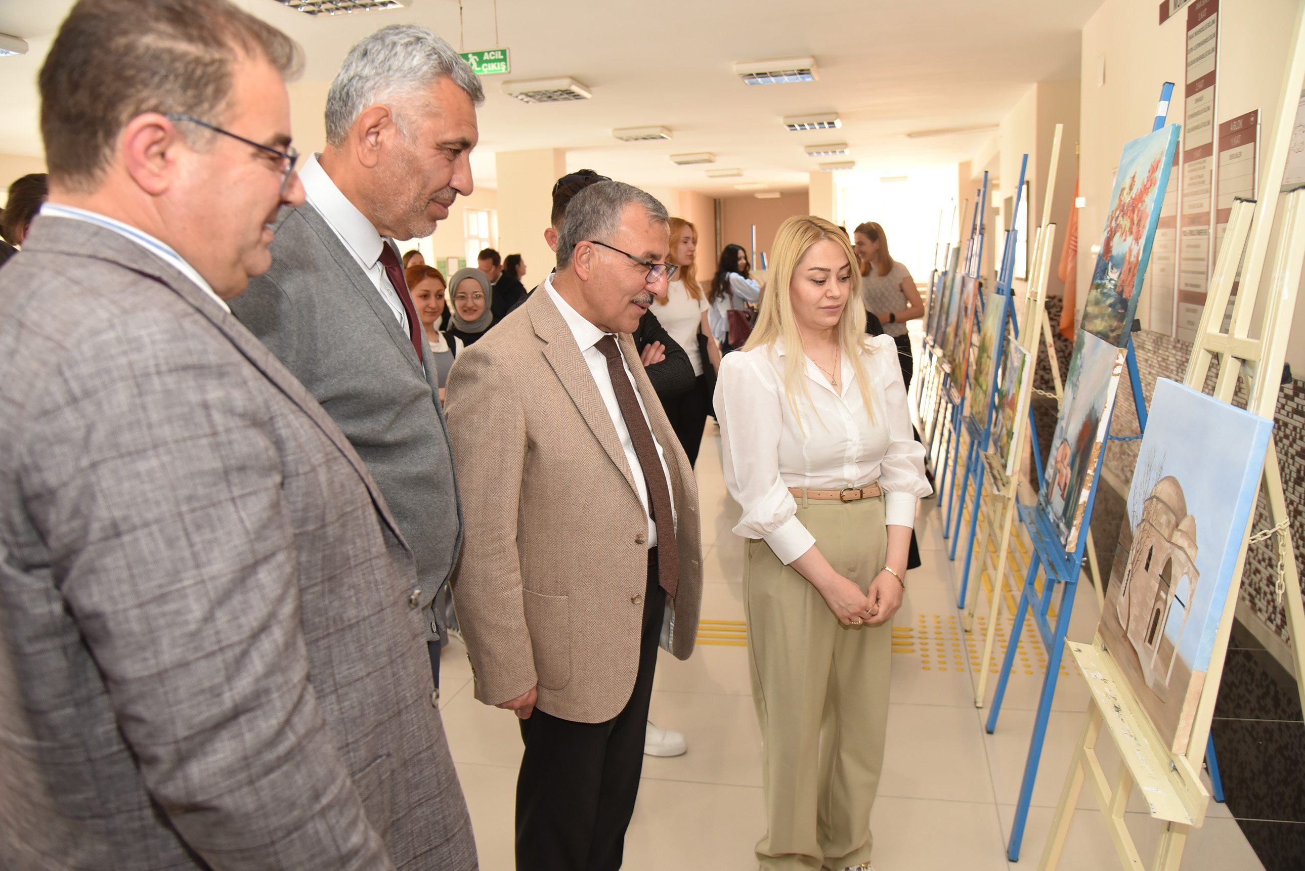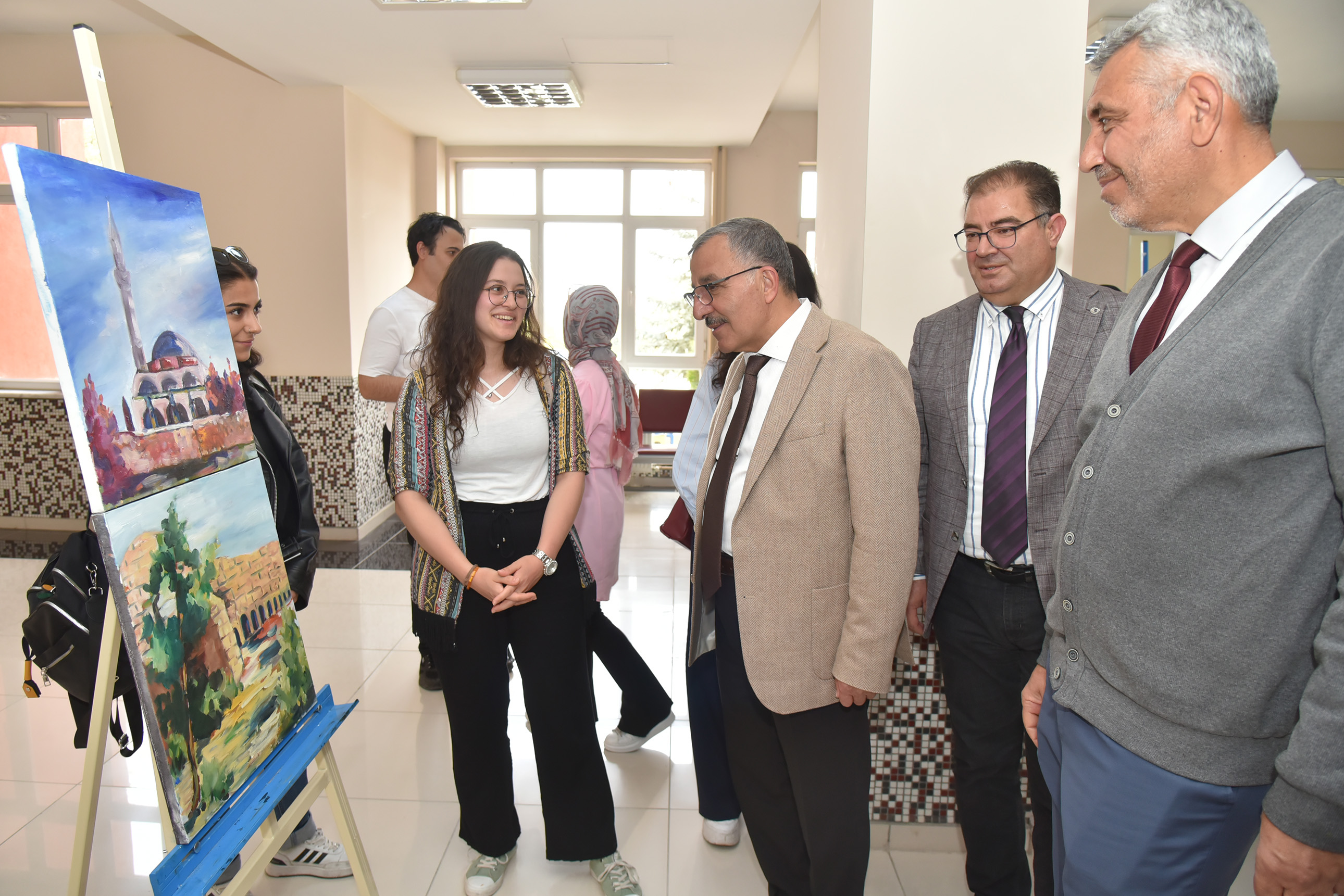 Karaman teması ile hazırlanan resimleri yakından inceleyerek bilgi alan Rektör Gavgalı, öğrencileri tebrik ederek, onlara sanat yaşamlarında başarılar diledi.