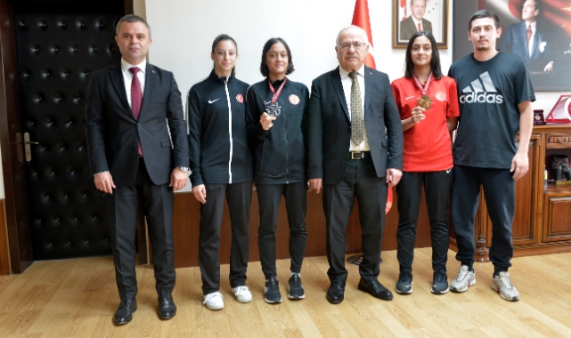 Elde ettikleri başarılarla Karaman'a dönen öğrenciler Rektör Namık Ak'ı ziyaret etti. Rektörlük makamında gerçekleşen ziyarette öğrencilere Spor Bilimleri Fakültesi Dekanı Prof. Dr. Sefa Lök ve KMÜ mezunu Antrenör Fuatcan Aldemir eşlik etti.