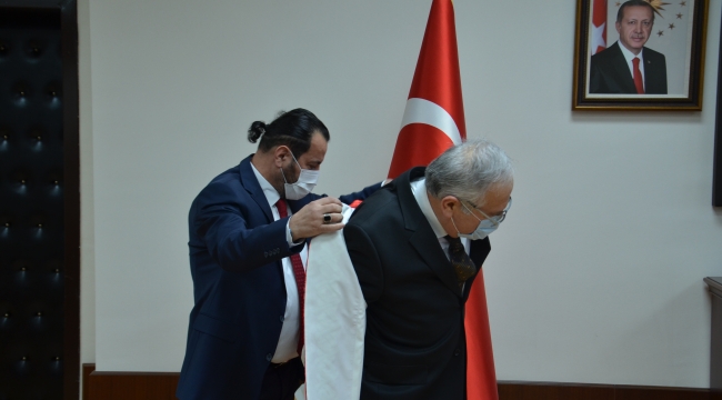 Konuşmaların ardından Akgül, Ak'a cübbe giydirerek, çiçek takdim etti. Rektör Ak ise yaptığı hizmetlerden dolayı Akgül'e plaket takdim etti.