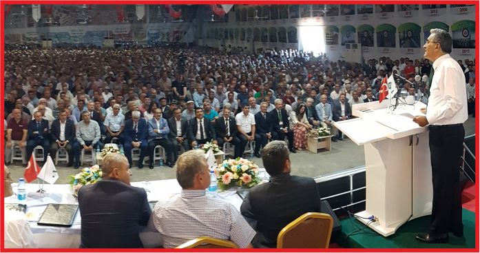 Binlerce çiftçinin coşkulu desteği ile kürsüye çıkan ve konuşmasına bir gün önce yıl dönümünü kutladığımız 30 Ağustos Zafer Bayramını tebrik ederek başlayan 25. ve 26. Dönem AK Parti Karaman Milletvekili, PANKOBİRLİK Genel Başkanı Recep Konuk, tırmıkla, çapayla, kağnı ile önce cephede savaşan, zaferi kazanan Türk çiftçisinin, istiklalin kazanılmasından hemen sonra savaşta silah olarak kullandığı tırmıkla, çapa ile tarlada tapanda ekonomik istiklal için işine dört elle sarıldığını ve sermayesi, sanayisi olamayan Genç Cumhuriyetimizin ekonomisini tarladan ürettikleriyle inşa ettiğini, ülke ekonomisine ilk can suyunu Türk çiftçisinin verdiğini hatırlatarak, ”Türk çiftçisi 97 yıl önce düşman çizmesine çiğnetmediği toprakları, şimdi de yabancı menşeli ürünlere ezdirmemekte kararlıdır. Üreticiler olarak biz, sofralardaki yerimizin tamamını, raflardaki, pazar tezgâhlarındaki, fabrika üretim bantlarındaki bu ülkenin üreticilerine tahsisli her yerin tamamını geri istiyoruz. Rafların, pazar tezgahlarının, mutfakların, üretim bantlarının yabancı menşeli ürünleriyle, yani ithal tarım ürünleriyle dolması ile vatan topraklarının askeri işgale uğraması arasında fark yoktur. Şükür rafların, pazar tezgahlarının, mutfakların tamamını kaybetmedik, işgal yok ama kabul etmeliyiz ki sızmalar var. Biz Türk çiftçisi olarak hepsini püskürtüp bizim olanın tamamını geri almakta kararlıyız.” dedi.