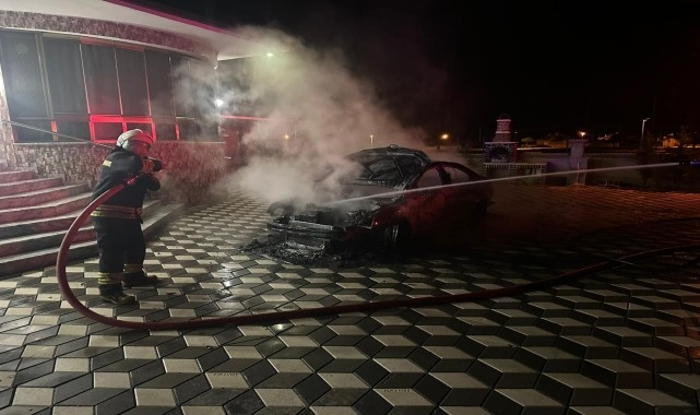 Erdal Ö'ye ait Yeni Mahalle'deki müstakil evin bahçesinde bulunan park halindeki otomobilde henüz bilinmeyen nedenle yangın çıktı.