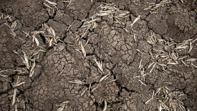 Bölge tarımının temel su ihtiyacını karşılayan barajın sularının tamamen çekilmesinin ardından zeminde çatlaklar oluştu.