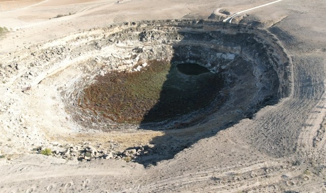 Geçen yıl sonbahar mevsiminde kuruyan, bu sene ilkbaharda suyla kısmen dolan Timraş Obruk Gölü, bu sene de kuraklıktan etkilendi.