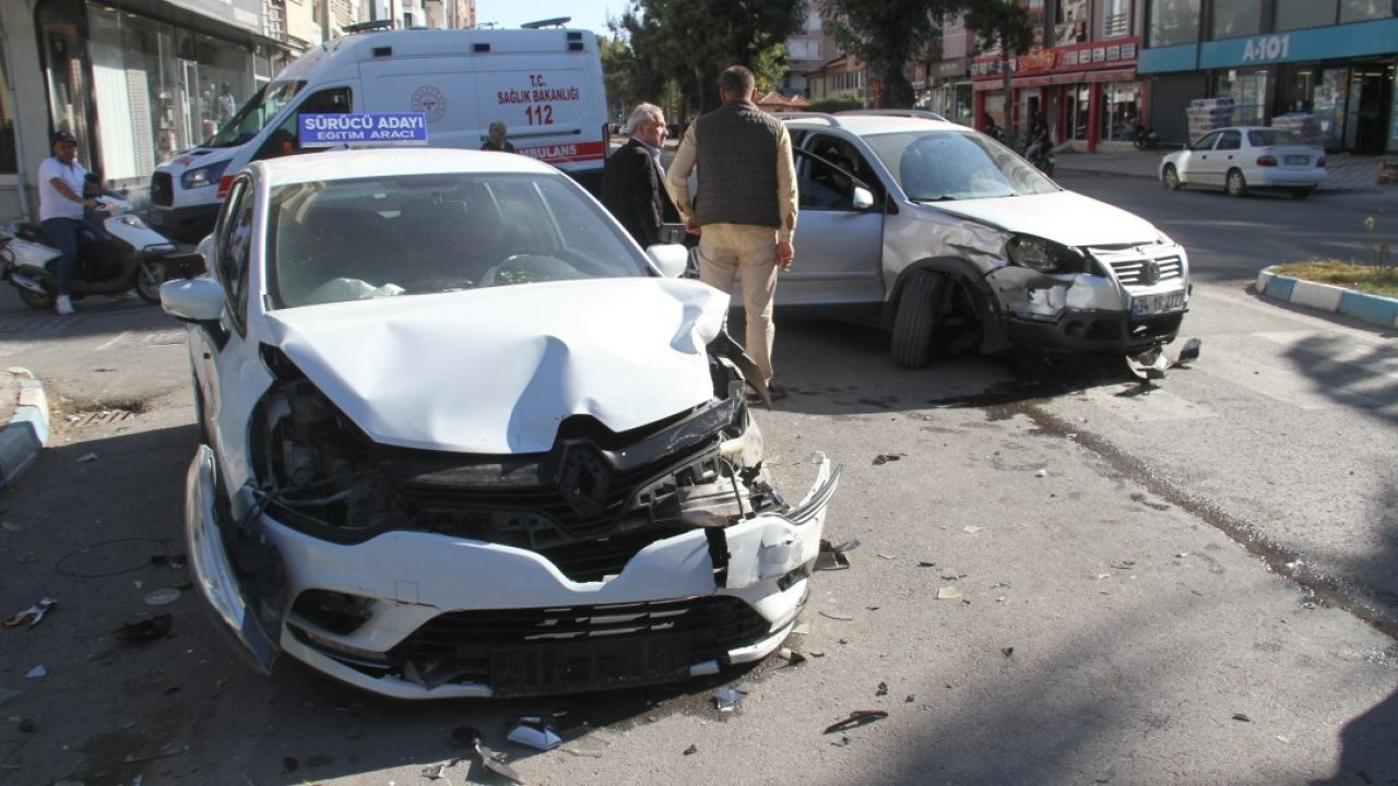 Hacıarmağan Mahallesi Antalya Caddesi'nde de iki otomobil çarpıştı, yaralanan sürücüler hastaneye götürüldü.