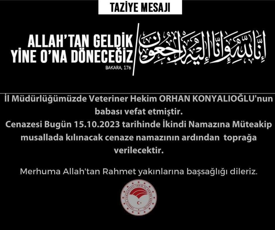 Konuya ilişkin taziye mesajı yayınlayan Karaman Tarım Orman İl Müdürlüğü, sosyal medya hesabından şu paylaşımı yaptı: