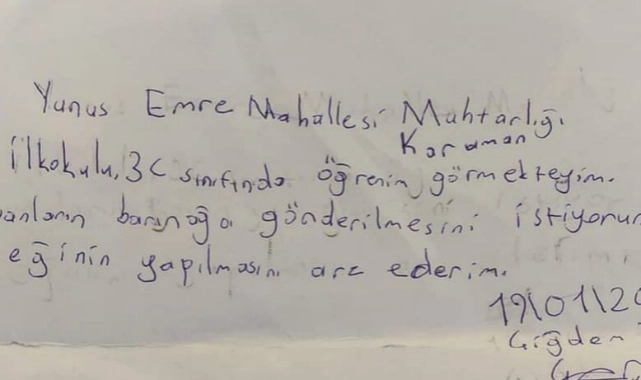 Karaman'da 3. sınıf öğrencisinin yazdığı dilekçe korkuyu gözler önüne serdi.