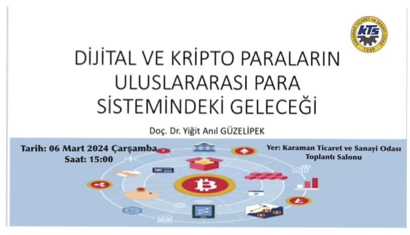 Karaman Ticaret ve Sanayi Odasından yapılan açıklada, "Son yıllarda karşımıza çıkan kripto para kavramı, herkes için yeni bir alternatif değişim aracı olmaktadır. Paranın elden ele değişim aracı olarak varlığını sürdürdüğü klasik anlayıştan farklı olarak, karşımıza çıkan bu dijital ekonomi, insanların ilgisini hızla çekmeye başlamıştır. Bu kapsamda Karaman Ticaret ve Sanayi Odası ev sahipliğinde 06 Mart 2024 Çarşamba günü saat 15:00 de Odamız Toplantı Salonunda üyelerimizin katılımıyla “Dijital ve Kripto Paraların Uluslararası Para Sistemindeki Geleceği” konulu eğitim düzenlenecektir.